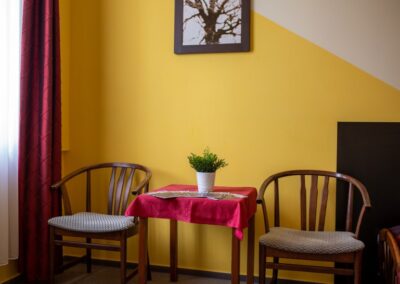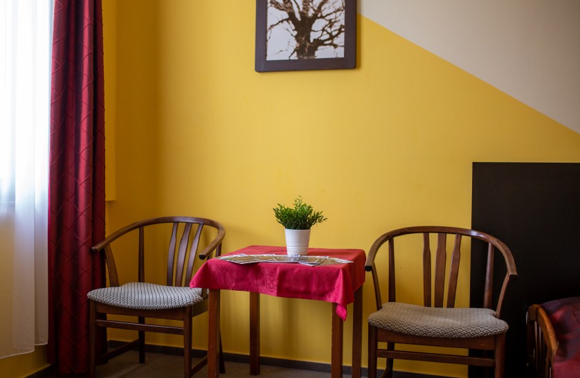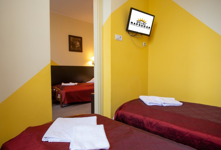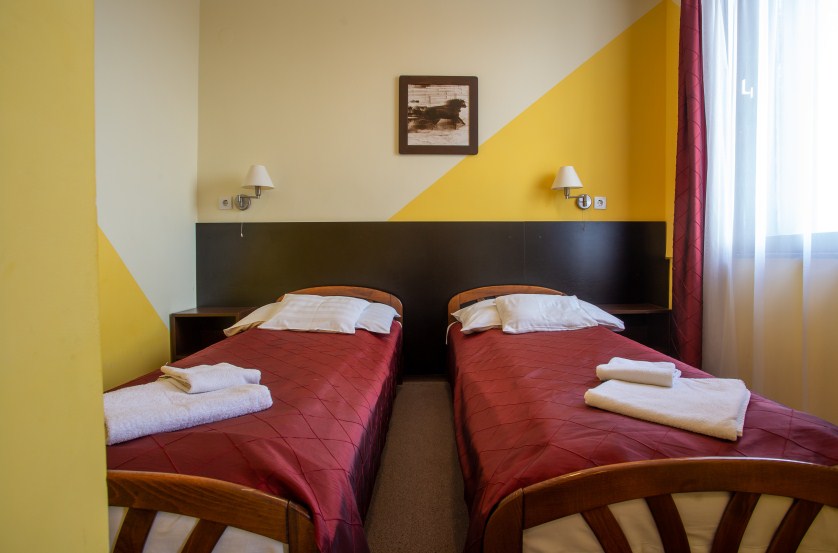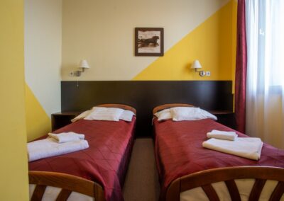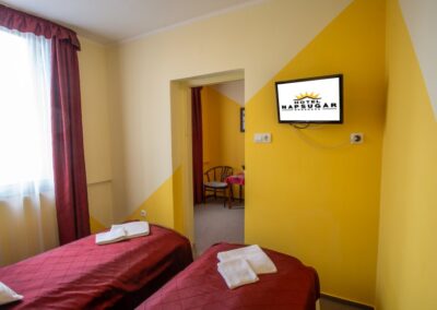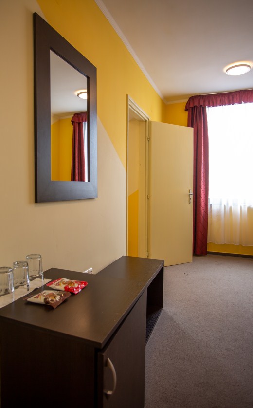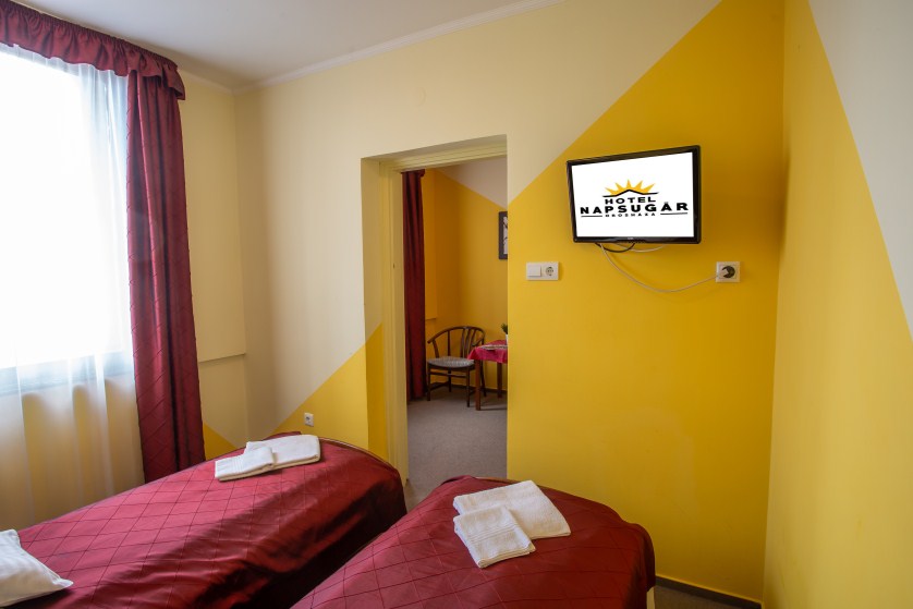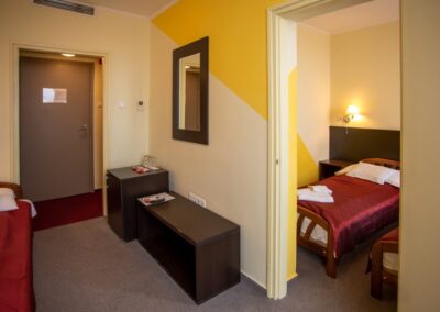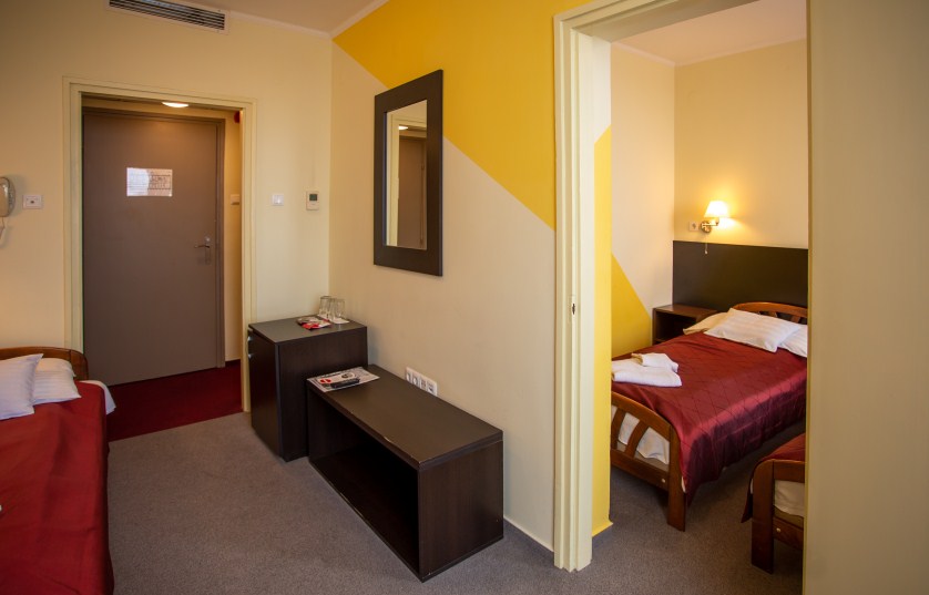 Kétlégterű szoba, mely két egymásba nyíló hálószobából áll. A szobatípusból 16 db érhető el.